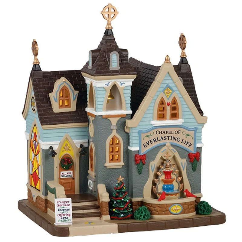 - Lemax Chapel of Everlasting Life – is a charming church that belongs to the Lemax Caddington Village Collection.